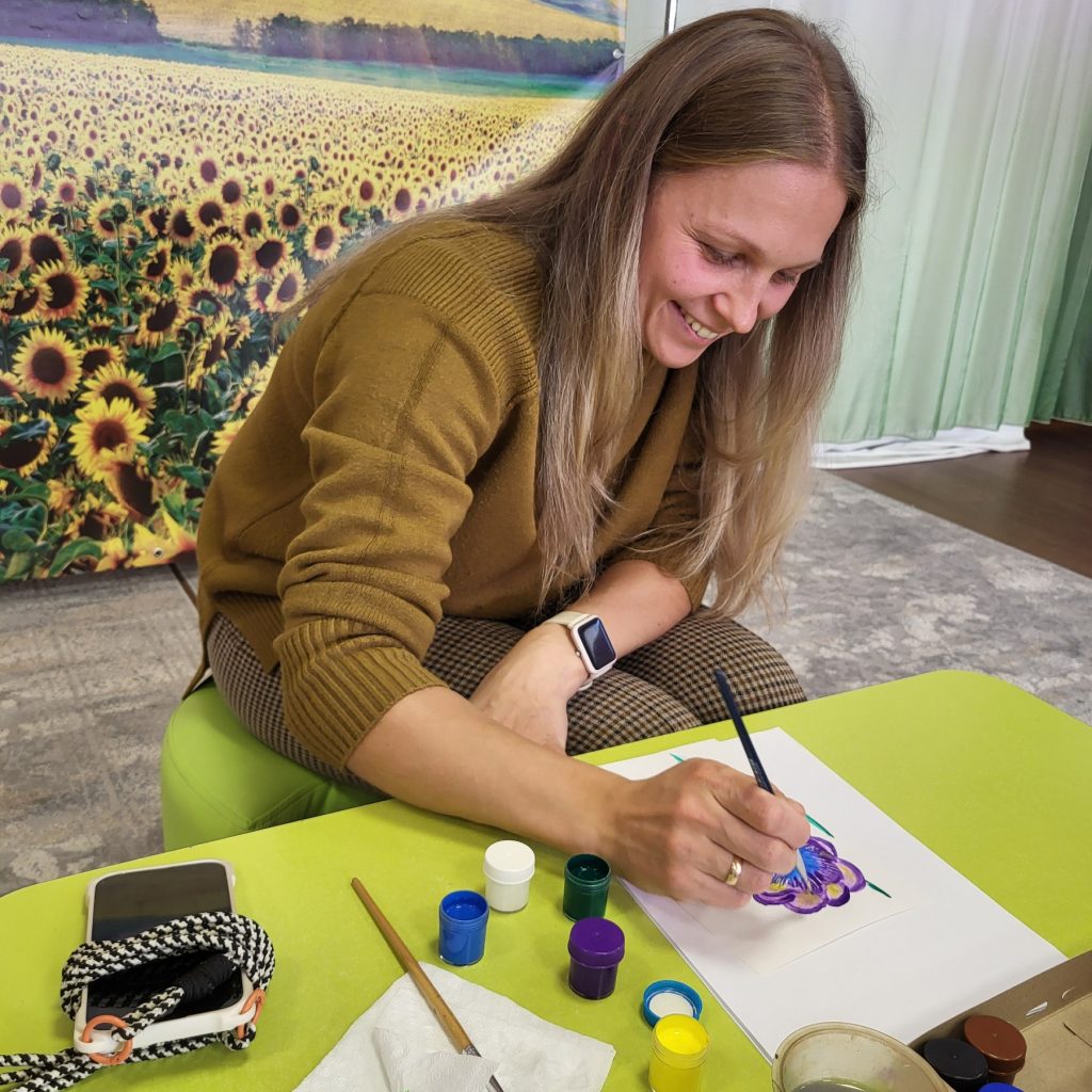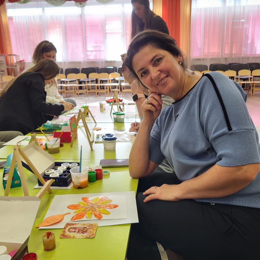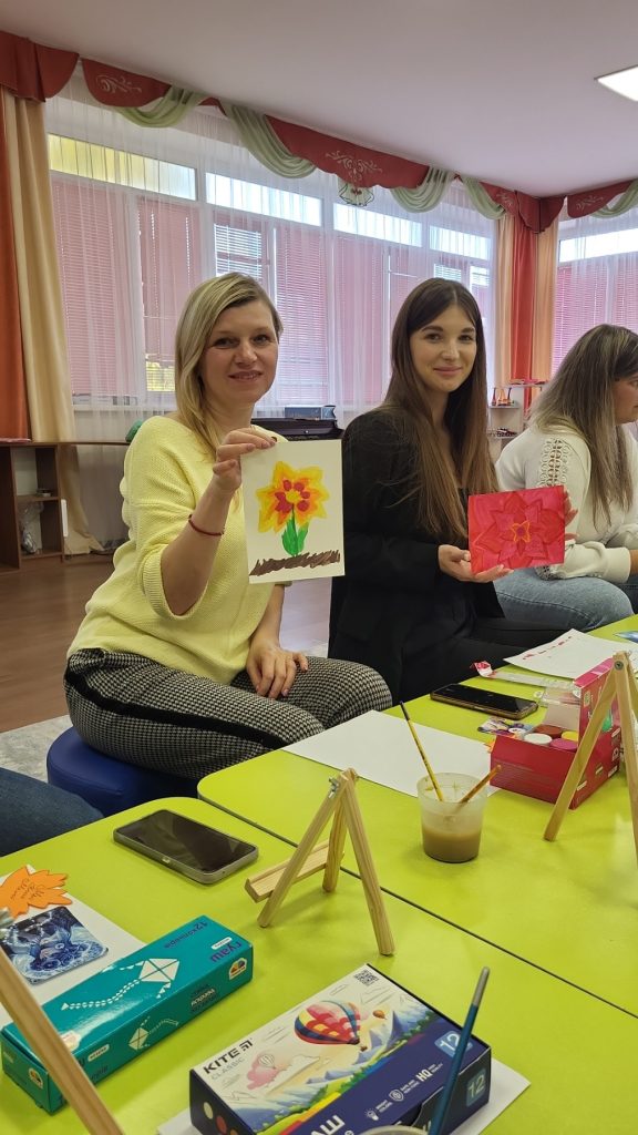 Спеціаліст Центру культури і дозвілля Борщагівської громади пані Людмила провела артерапію для колективу ЗДО «Малятко». Вихователі, логопеди, психологи, методист, асистент поринули на годину у світ творчості та релаксації, займались рефлексією та самозануренням. Як результат творчості отримали відображення квітки натхнення для кожної учасниці, а головне-сили жити та працювати.