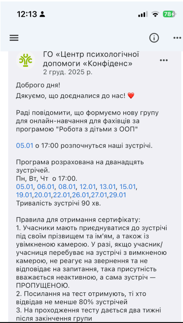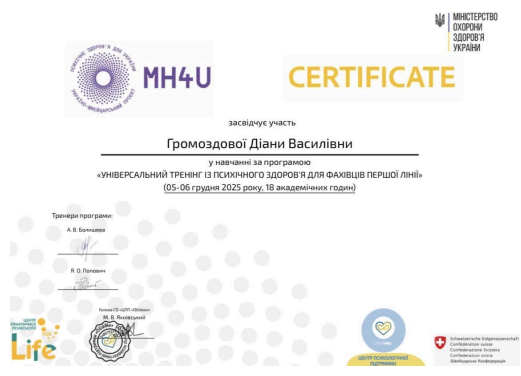 З 05-06 грудня 2025 року відвідала «універсальний тренінг із психічного здоровʼя для