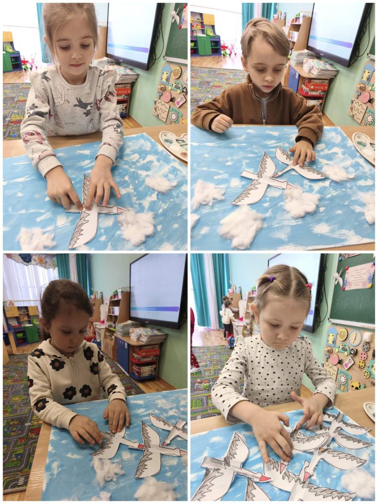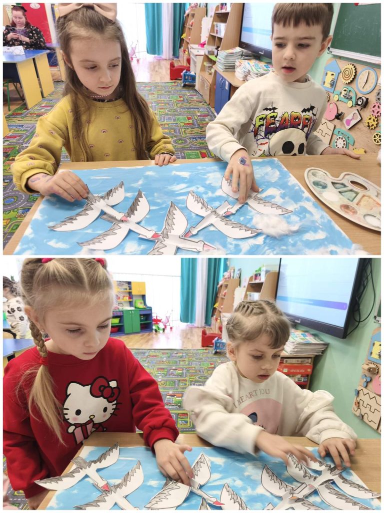 Під час творчої діяльності діти створили аплікацію «Журавлі в небі» — як символ пам’яті, світла та вдячності.