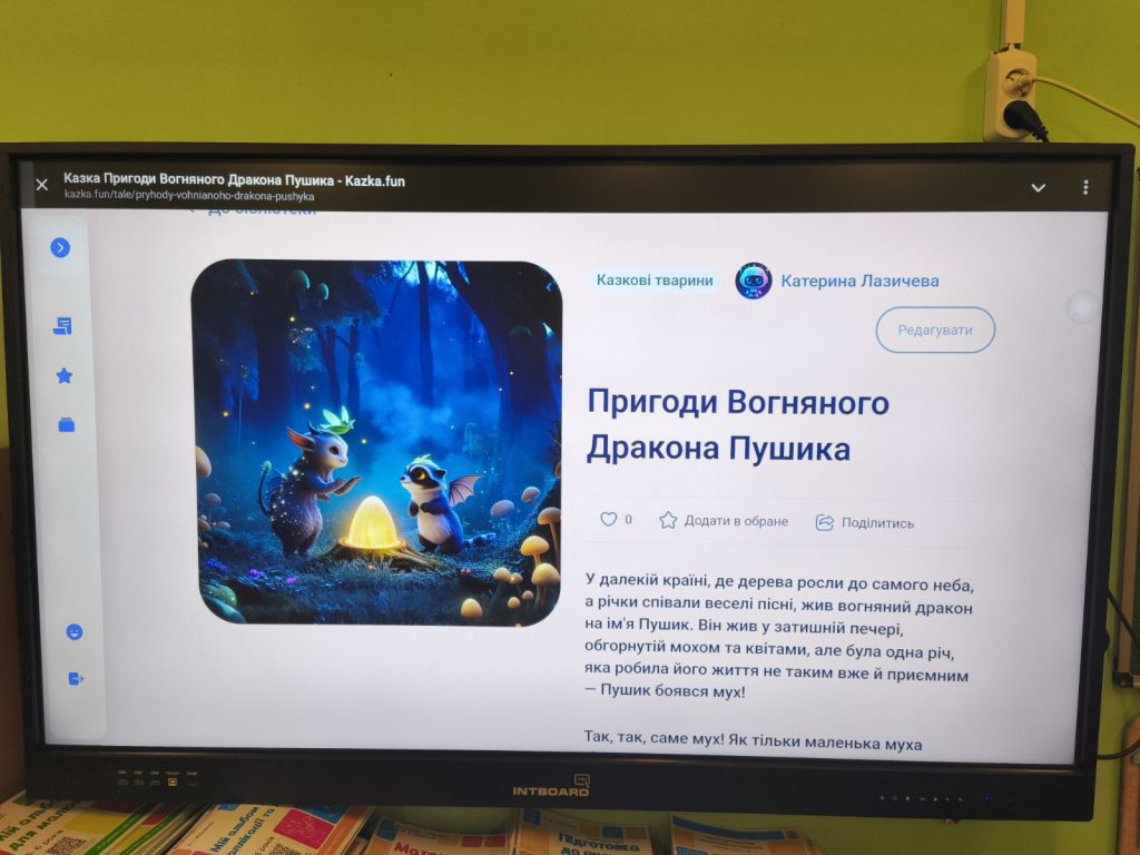 Діти разом з вихователем познайомились ближче зі штучним інтелектом – на заняттях вчились створювати казки з вигаданими персонажами. Ці заняття виховують інтерес дітей до художнього слова, розвивають творчу уяву, фантазію, згуртовують колектив, вчать оцінювати власні можливості та прагнути до відкриття нового. Діти так захопились процесом, що домовились започаткувати традицію щотижневої нової казки, звісно під менторством дорослих.