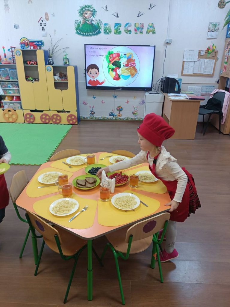 Тим часом вихователі провели цікаві та практичні заняття на тему здорового харчування, привчаючи дітей стежити за своїм здоров’ям змалку. Також дітей привчаємо до естетичногосервірування столів до сніданку, обіду чи вечері, що неабияк покращує апетит та настрій малечі та закладає основу працевиховання.