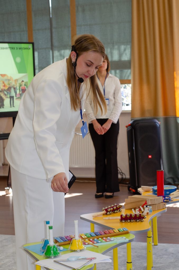 Логічним продовженням теоретичної частини став огляд освітнього простору закладу, під час якого учасники лабораторії переглянули ресурсну кімнату та спортивну залу, укомплектовані сучасним обладнанням. Практичний блок семінару розкрив багатогранність корекційно-розвиткової роботи закладу. Психолог ЗДО Діана ГРОМОЗДОВА презентувала актуальну тему використання терапії «Хібукі» та методів арт-терапії для психоемоційної підтримки дітей. Музичний керівник Олена ШУШВАР поділилася досвідом впровадження принципів Орф-педагогіки, демонструючи, як через ритм та музику відбувається природний розвиток дитини.